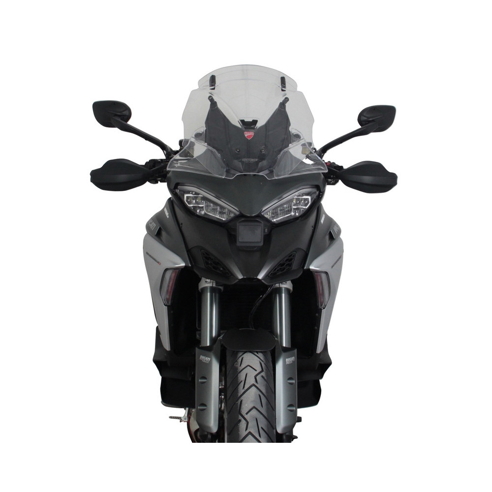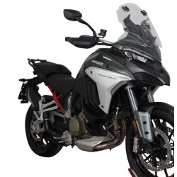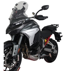 Un enduro de tourisme de 170 ch veut bouger ! En haut et en bas des montagnes, sur les routes de campagne et les autoroutes, en tout-terrain et sur route. Pour se déplacer en toute commodité, nous recommandons le pare-brise vario touring de MRA (VTM). Le spoiler du pare-brise vario touring peut être réglé sur 7 positions différentes et dans la position la plus haute, la longueur totale du pare-brise est de 47 cm. De cette façon, le flux d'air entre le pare-brise et le spoiler VT peut être plus ou moins divisé, ce qui réduit encore la pression du vent sans générer de turbulences. Le pare-brise MRA vario touring est muni d'un trou d'admission d'air qui permet un flux d'air arrière du pare-brise, minimisant la pression négative et réduisant ainsi les turbulences au niveau du bord supérieur du pare-brise. Le pare-brise vario touring est disponible en transparent ou en gris fumé.