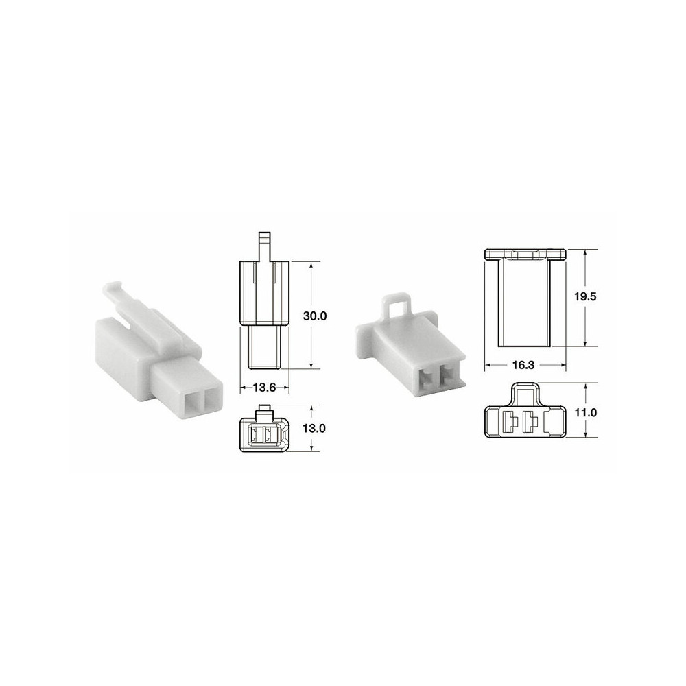 Jeu de 5 connectiques complètes (boîtiers, cosses), non-étanche type origine constructeur.