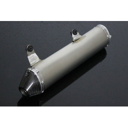 Silencieux inox embout carbone, l'embase du silencieux est en aluminium usiné sur machine CNC