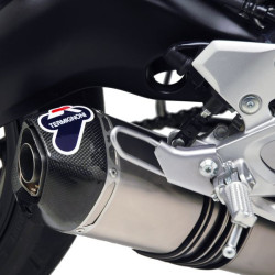 La ligne Termignoni est le meilleur choix pour ceux qui cherchent à faire évoluer leur MT-07, FZ-09 ou XSR 900 au niveau des performances. Cette ligne d’échappement 3 en 1 avec un collecteur inox se décline avec plusieurs finitions de silencieux, soit tout carbone, soit titane avec embout carbone ou encore en version black avec silencieux tout carbone pour ceux qui recherchent le look "vintage".