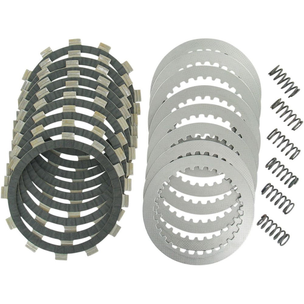 Kit d’embrayage série DRCFKit d'embrayage renforcé conçu pour une utilisation intensive et dans un environnement de course Muni de disques garnis d’embrayage revêtus de fibre de carbone, d’un jeu complet de disques lisses e Idéal pour les applications de moteur à 4 temps et couple élevé ; amélioration parfaite des performances 2 temps