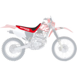 Elle a pour particularité d’être composée de 2 revêtements antidérapants différents, l’un recouvrant le dessus de la selle et l’autre les côtés.