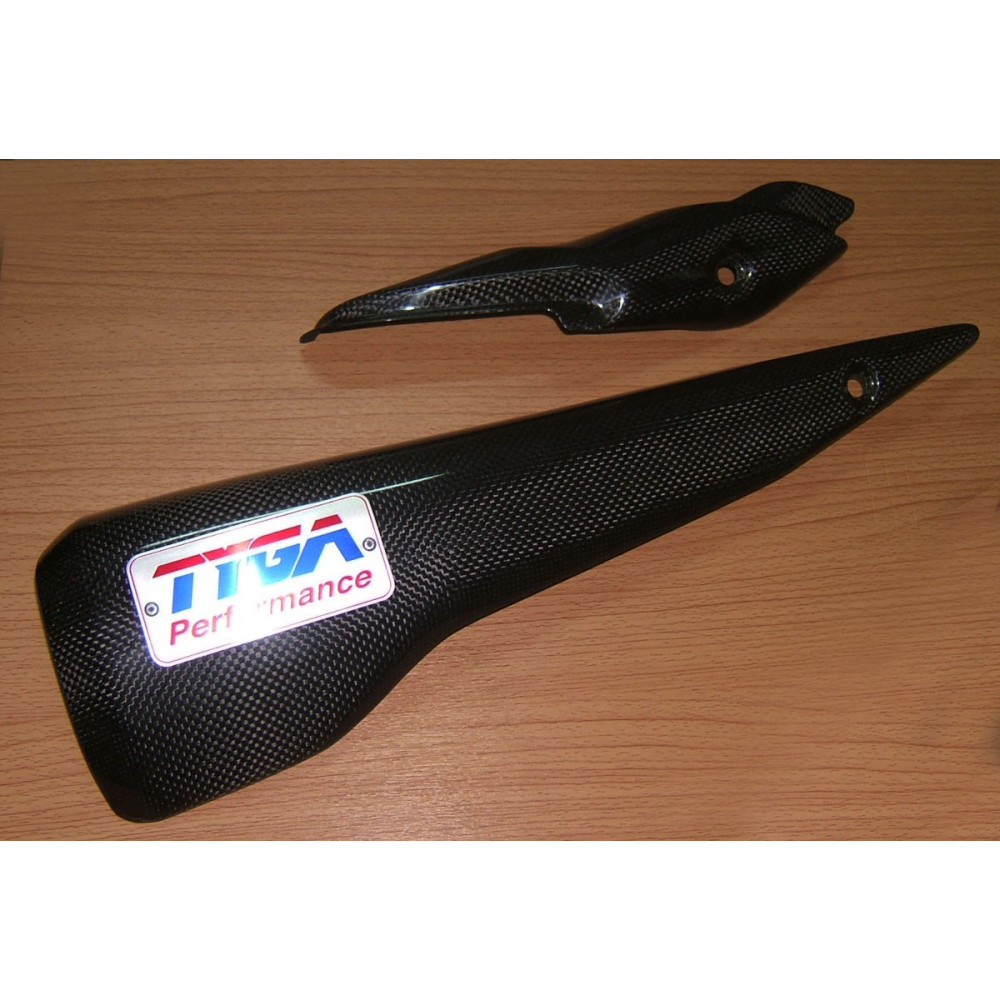 Cet ensemble de protections en carbone remplace les carters d'échappement d'origine.