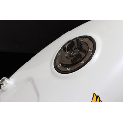 Renforcé avec du Kevlar pour une résistance à l'abrasion et à la perforation ce réservoir est à la fois solide et léger, les inserts d'origines (bouchon de réservoir, robinet) ont été réalisés en aluminium usiné sur machine a commande numérique (CNC).
