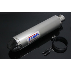 Silencieux Tyga aluminium rond 380mm embout carbone, Ø 50mm