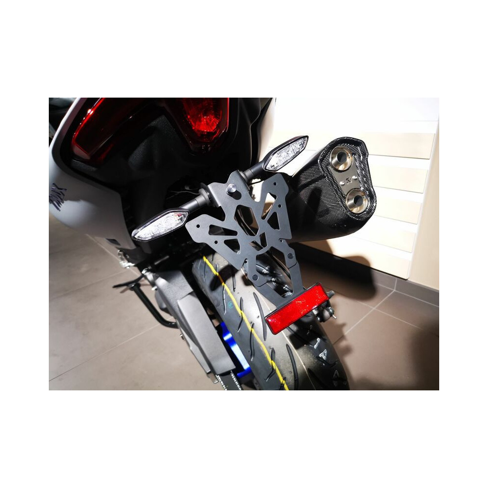 - Permet la fixation de la plaque d’immatriculation, clignotants et éclairage de plaque.